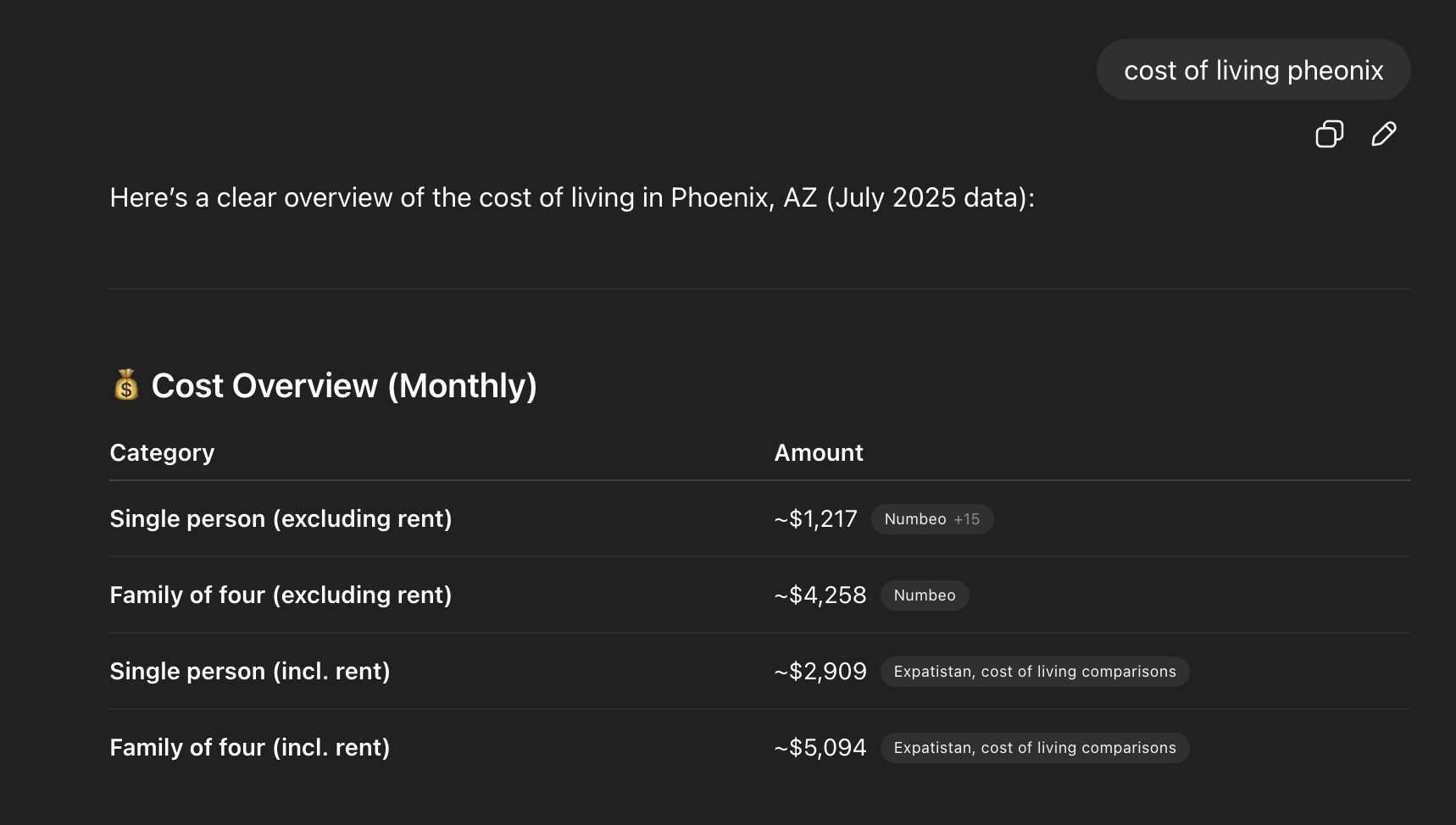 I recently used Chat GPT to help calculate cost of living in Phoenix Arizona.