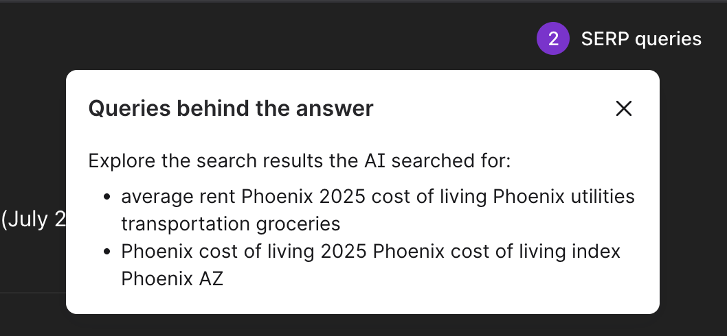 My prompt was simple, 'cost of living Phoenix'. This is the exact same prompt I would have used for a normal google search.